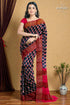 Black and Red Hand Block Printed Pure Tussar Silk Saree with Zari Border