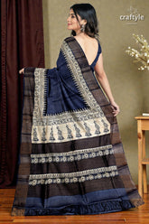 Black Rock Hand Block Print Zari Border Pure Tussar Saree