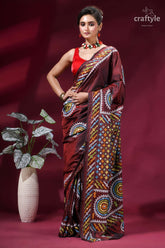 Handcrafted Kutch Work Silk Saree in Purple Brown with Mirror Work